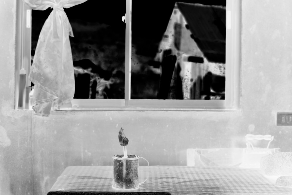 Fig. 2 Chonchona, lámpara casera. (Tarro de lata, mecha y parafina) Fuente: Registro trabajo de campo Amparo Prieto. Colbún, 2016
