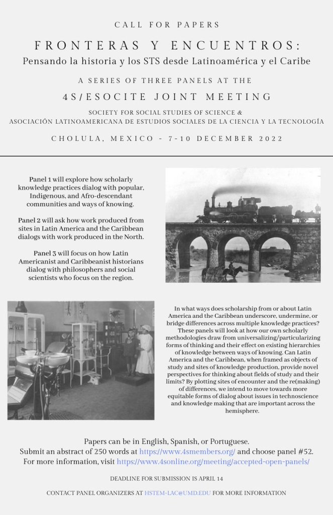 Submit your abstract- Fronteras y Encuentros: Pensando la #historia y los #STS desde #Latinoamérica y el #Caribe. Nelson Arellano-Escudero PhDabril 8, 2022agosto 7, 2022Congresos, conferencias y seminarios. Navegación de entradas AnteriorSiguiente @4sWeb / @esocite Conference in Cholula, México, 7-10 December 2022 April 14 deadline #twitterstorians Comparte esto: Haz clic para compartir en X (Se abre en una ventana nueva) X Haz clic para compartir en Facebook (Se abre en una ventana nueva) Facebook Haz clic para compartir en Pinterest (Se abre en una ventana nueva) Pinterest Haz clic para enviar un enlace por correo electrónico a un amigo (Se abre en una ventana nueva) Correo electrónico Haz clic para compartir en WhatsApp (Se abre en una ventana nueva) WhatsApp Haz clic para compartir en LinkedIn (Se abre en una ventana nueva) LinkedIn Haz clic para imprimir (Se abre en una ventana nueva) Imprimir Me gusta Cargando...