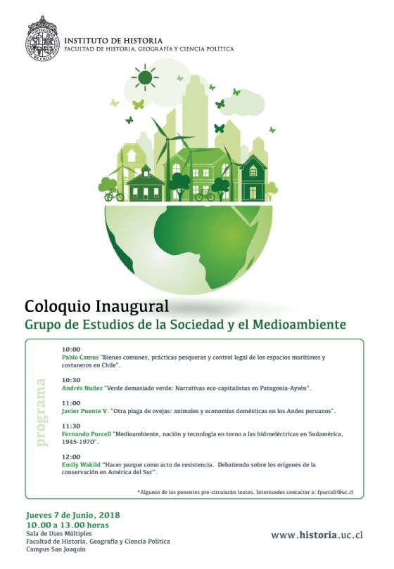 Grupo de estudios de la Sociedad y el Medioambiente. Jueves 7 de junio, 10:00 a 13:00 hrs. PUC, Campus San Joaquín.