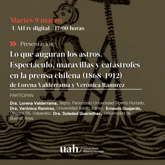 Presentación Libro “Lo que auguran los astros. Espectáculo, maravillas y catástrofes en la prensa chilena (1868-1912)”. Martes 9 de marzo, 5 pm (Chile continental).