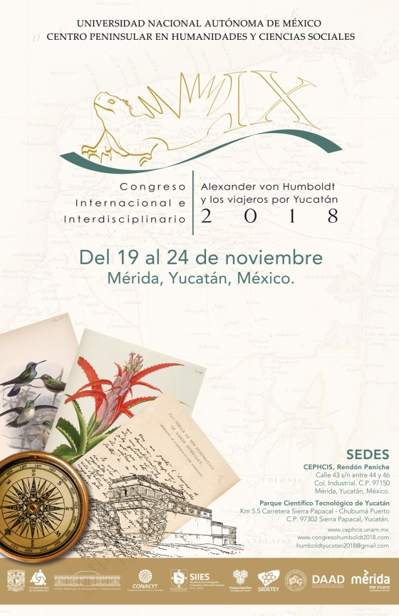 Dos integrantes del laboratorio participarán en el IX CONGRESO INTERNACIONAL E INTERDISCIPLINARIO. ALEXANDER VON HUMBOLDT Y LOS VIAJEROS POR YUCATÁN. Mérida, Yucatán, México, 19 y 24 de Noviembre de 2018.