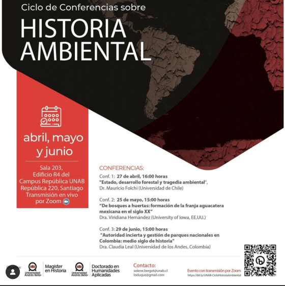 «Estado, desarrollo forestal y tragedia ambiental» Dr. Mauricio Folchi (Universidad de Chile). Jueves 27 de abril, 16.00 hrs. Sala 203, República 220, Edificio R4, Santiago de Chile.